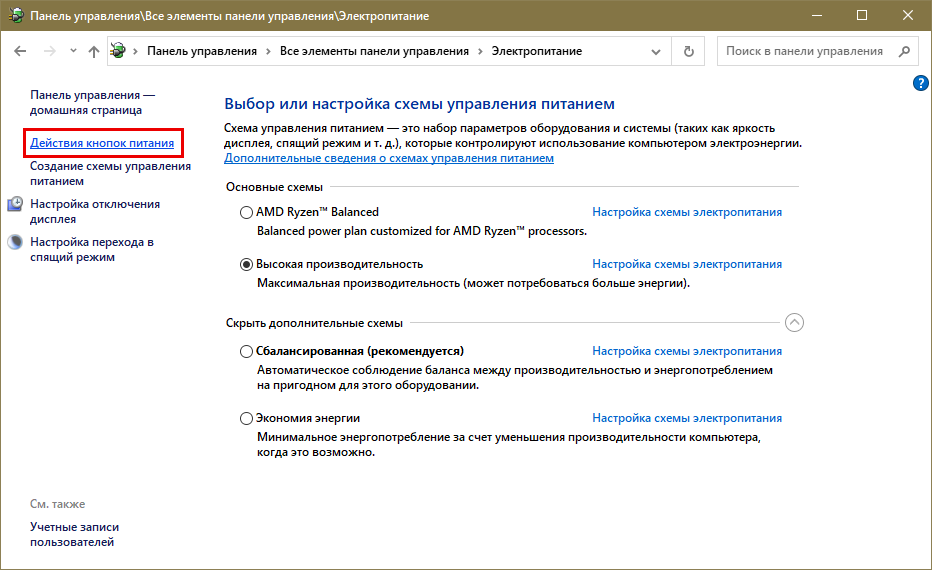 Если указанного пункта нет, как на изображении выше – это указывает на то, что у вас отключена гибернация. В таком случае быстрый запуск не работает и, соответственно, не может вызывать ошибки.