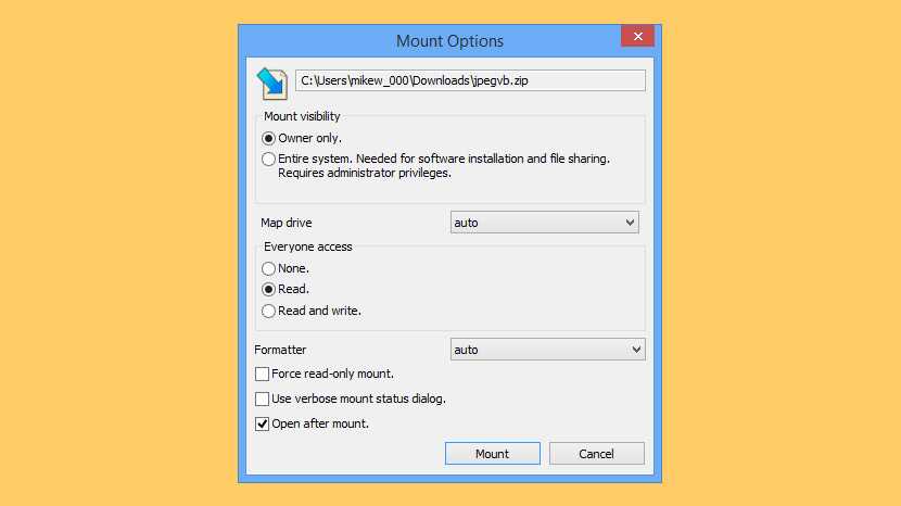 - Монтируйте различные образы, VHD, ZIP-архивы