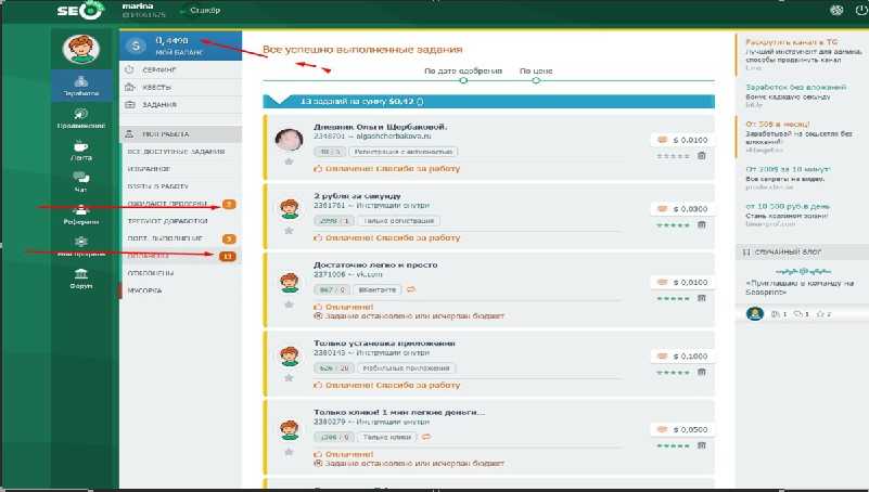 Уже на второй день работы я довольно хорошо ориентировалась на сайте сеоспринт, знала какие задания лучше брать, а какие не стоит, более тщательно выбирала работодателей и предлагаемую ими работу.