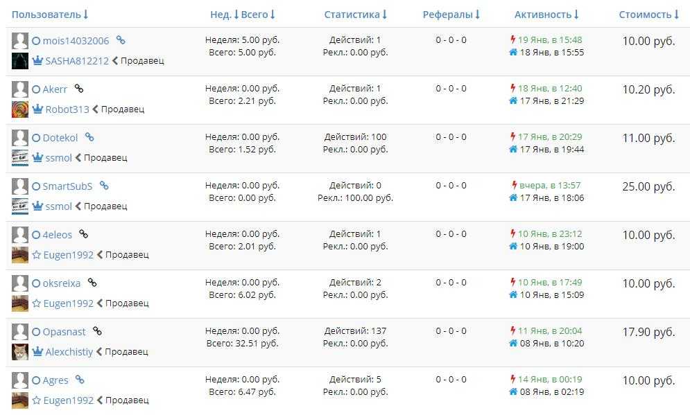 Нужно научиться правильно оценивать рефералов. Большая часть предложений на биржах – это заброшенные аккаунты. Тут можно пойти двумя путями – скупать новичков и рассчитывать на их перспективу. Либо покупать пользователей, у которых много рефералов, чтобы зарабатывать на последующих уровнях реф. системы.