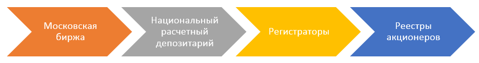 Информация об изменении владельцев ценных бумаг поступает реестродержателям в конце каждого торгового дня, проходя через «Национальный расчётный депозитарий». При этом акции одной компании не имеют уникальных идентификационных номеров внутри реестра, поэтому и сведений о передаче от одного лица другому у регистратора нет. Ведется лишь количественный учет акций с записями об их владельцах.