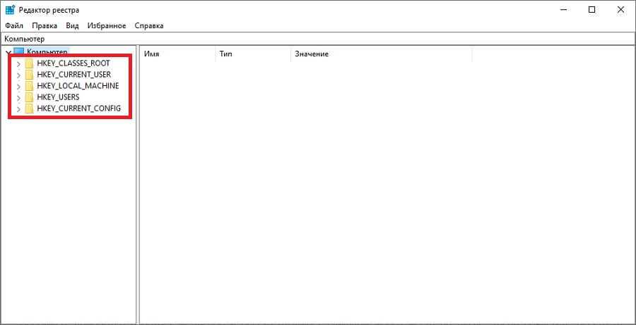 Их всего 5 штук. После вся информация делится на подразделы, в них содержатся параметры, занимающие основную часть места в реестре.