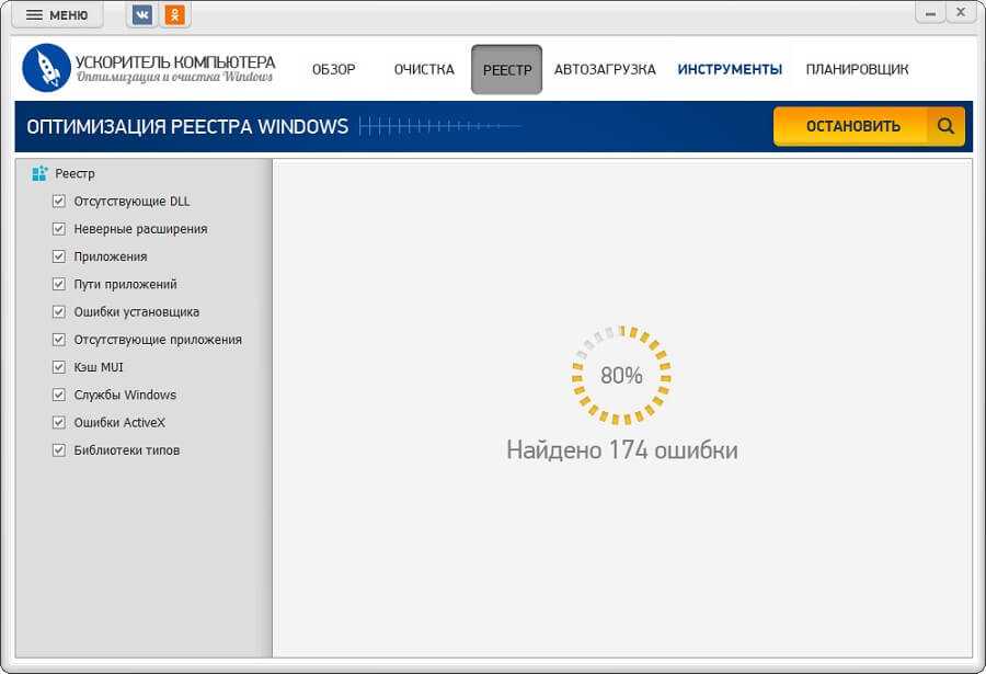 Программа Ускоритель Компьютера поможет найти и устранить все ошибки реестра
