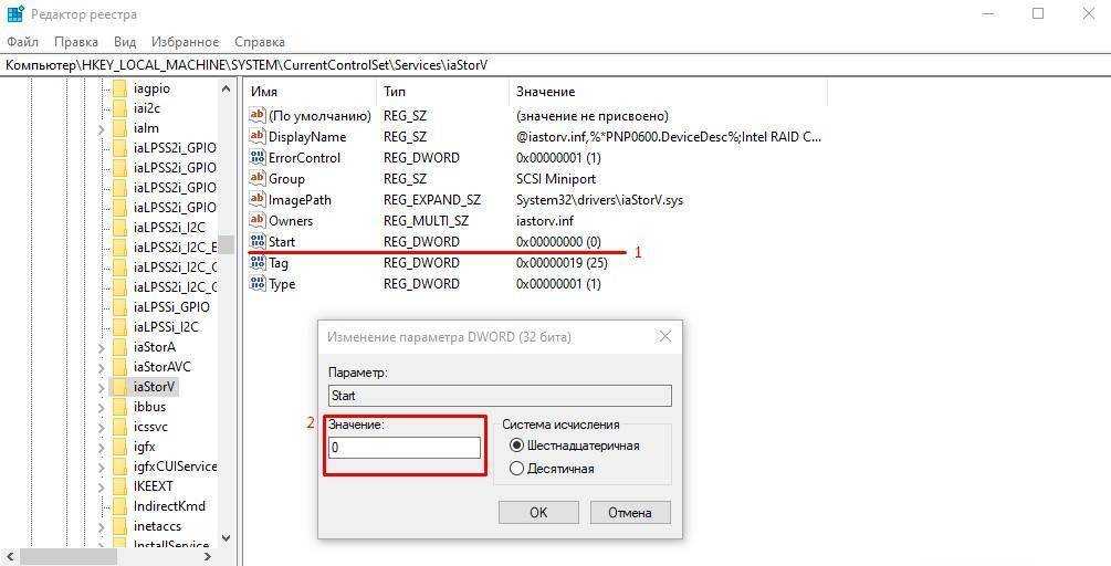 - пройтись по маршруту: «HKLM \ SYSTEM \ CurrentControlSet \ Services \ iaStorV»;