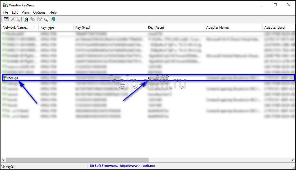 Чтобы найти ключ безопасности сети на ноутбуке, потребуется установить WirelessKeyView. Она подойдет для всех версий Windows, от 10 до XP. Способ подходит, если Интернет на компьютере ранее был настроен через интересующую беспроводную сеть, но теперь устройство отключено от Wi-Fi.