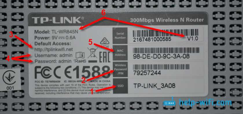 Цифры со скриншота соответствуют списку, который вы можете увидеть выше. На всех устройствах от TP-Link заводская информация находится на наклейке, снизу роутера.