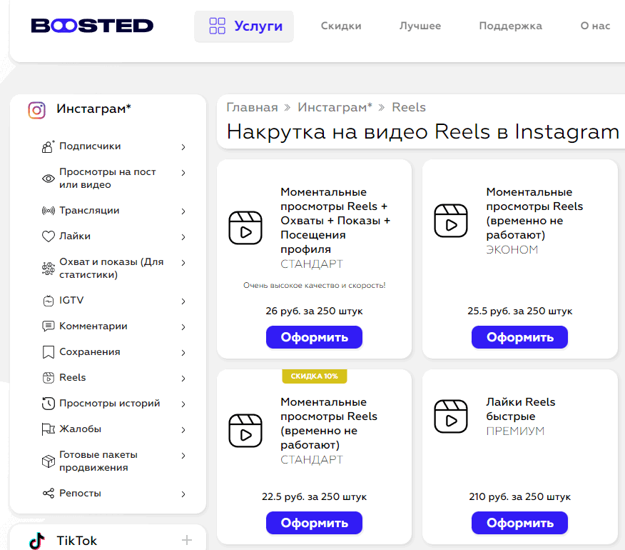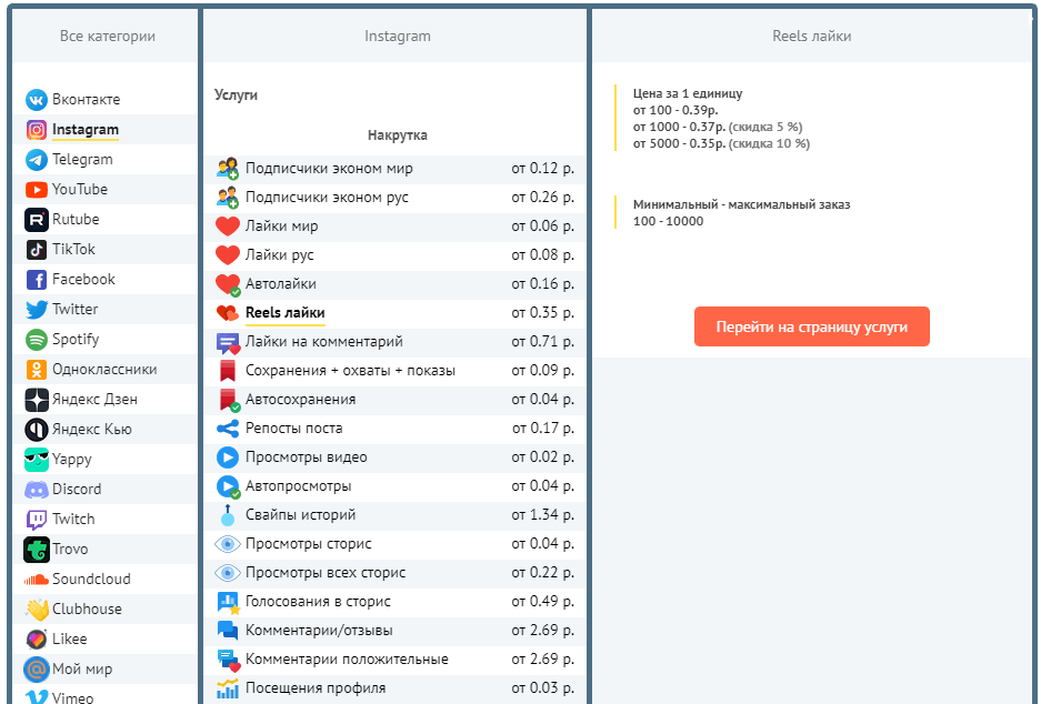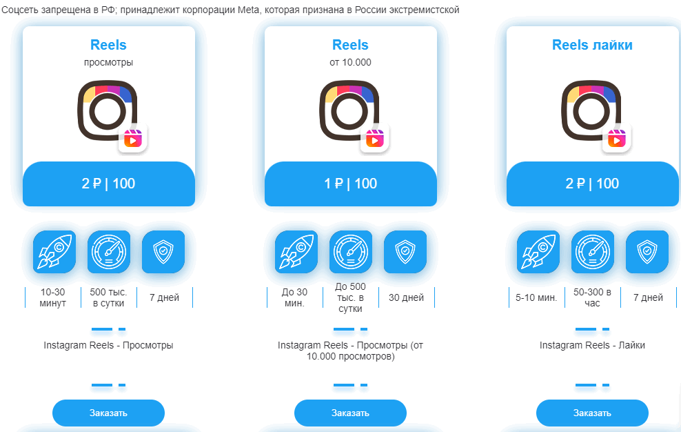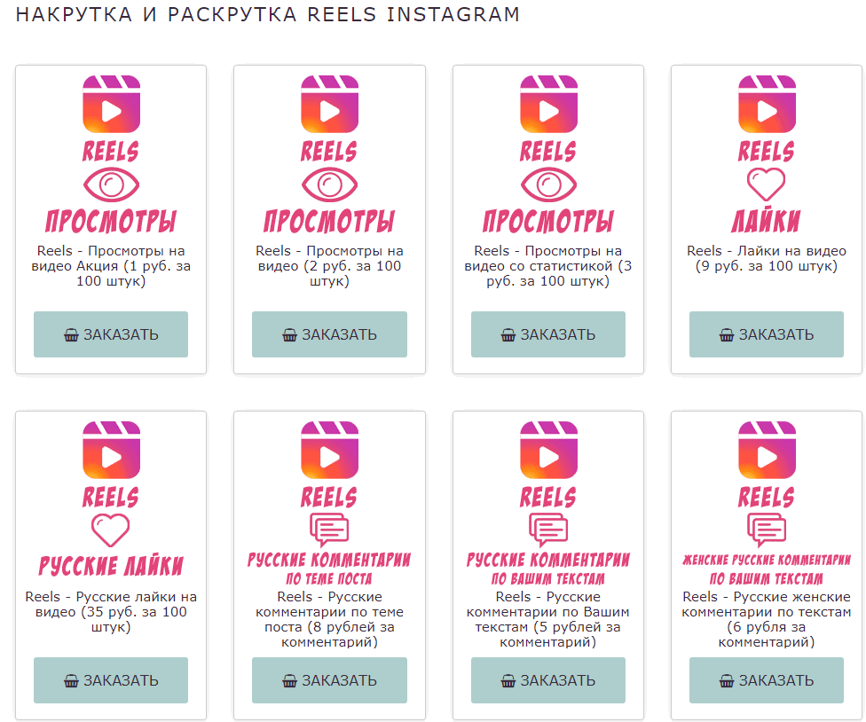 Большое количество смежных услуг для Reels в Инстаграм, по заверениям администрации сервиса используются только белые методы, но мы то с вами знаем, что вся накрутка не является таковой и ей нужно пользоваться максимально аккуратно, чтобы оставаться незаметным и получать результат.