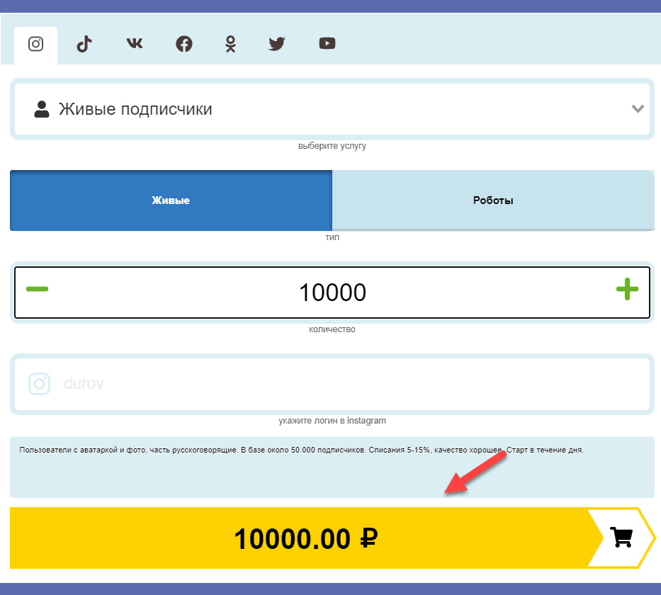 Продвижение подписчиков начнется сразу после оплаты заказа.