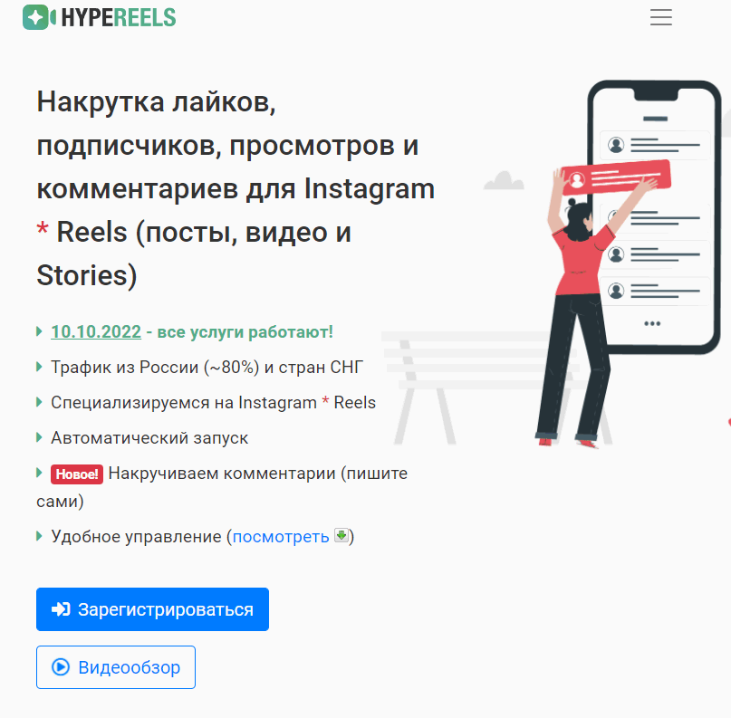 простоспец.рф уже 9 лет на рынке и имеет 100 000 пользователей, которые ежедневно выполняют 1000 заказов рекламодателей. Есть возможность заказать накрутку просмотров видео и лайков на Reels.