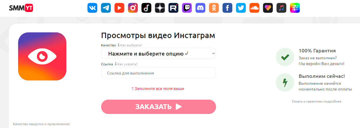 Второе место занимает сервис Smmyt, который так же предлагает накрутку просмотров на видео в Instagram.