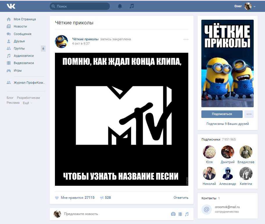 Развлекательная группа. В ней могут размещаться смешные истории, видео и гифки, цитаты, стихи с юмором, мемы и т. п. Подписчиков в таких сообществах обычно много, но есть две проблемы. Во-первых, большая часть аудитории младше 18 лет и не является платежеспособной, во-вторых, сложно развить такую группу в то время, когда в ВК их очень много, и придется заинтересовать подписчиков уникальным контентом.