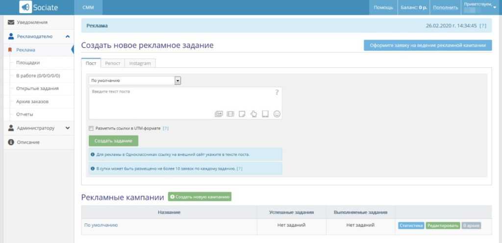 - размещение рекламных постов;