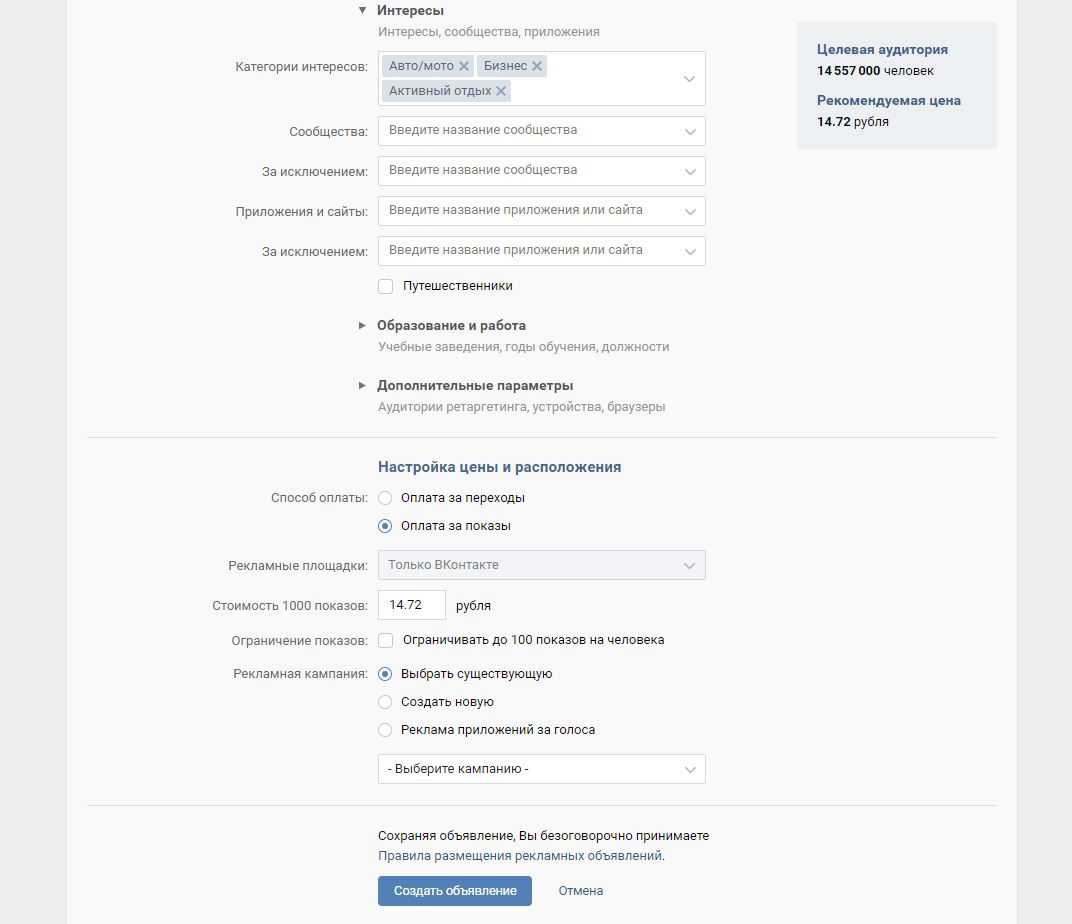 рекламы в сообществах позволяет демонстрировать объявление заинтересованным