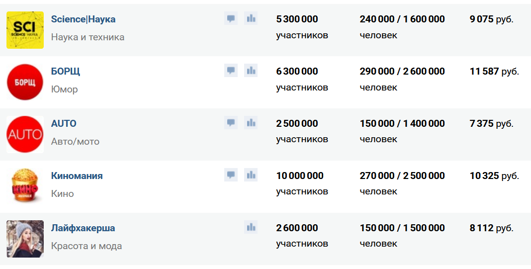 Чтобы узнать о заработках конкретных групп, можно посмотреть, за сколько они продают рекламу (это самый распространенных способ получения прибыли).