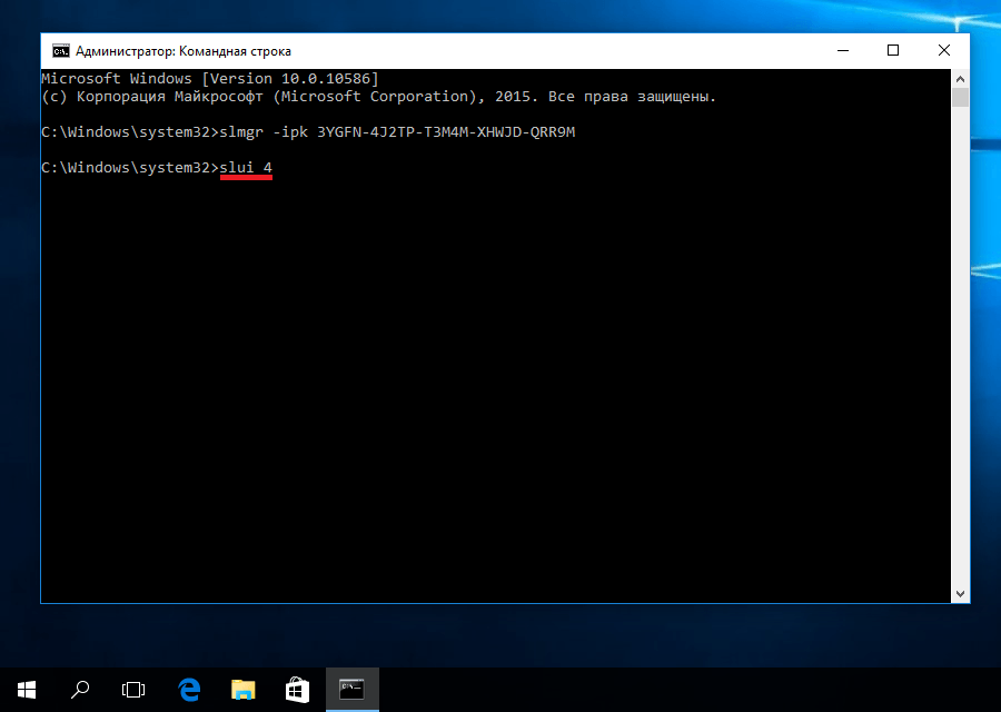 - В командной строке введите запрос «slui 4» и нажмите Enter.