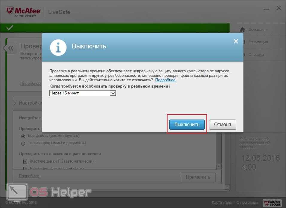 Защитное программное обеспечение компьютера может помешать установке сторонних программ или игр, особенно, когда речь идет о пиратских сборках. В таких ситуациях антивирус принимает некоторые игровые файлы и библиотеки за угрозу, после чего автоматически помещает их в карантин или полностью удаляет. Перед тем, как запустить распаковщик игры, попробуйте полностью отключить защиту в режиме реального времени, чтобы антивирус не успел внести свои изменения.