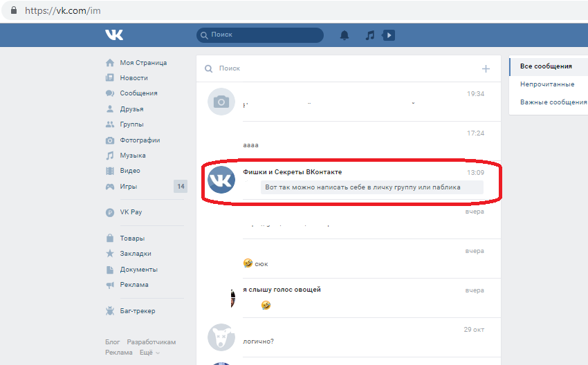 Как написать самому себе в вк