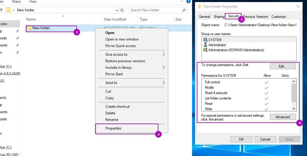 Основное средство для редактирования этих разрешений в GUI можно увидеть зайдя в свойства файла или папки: