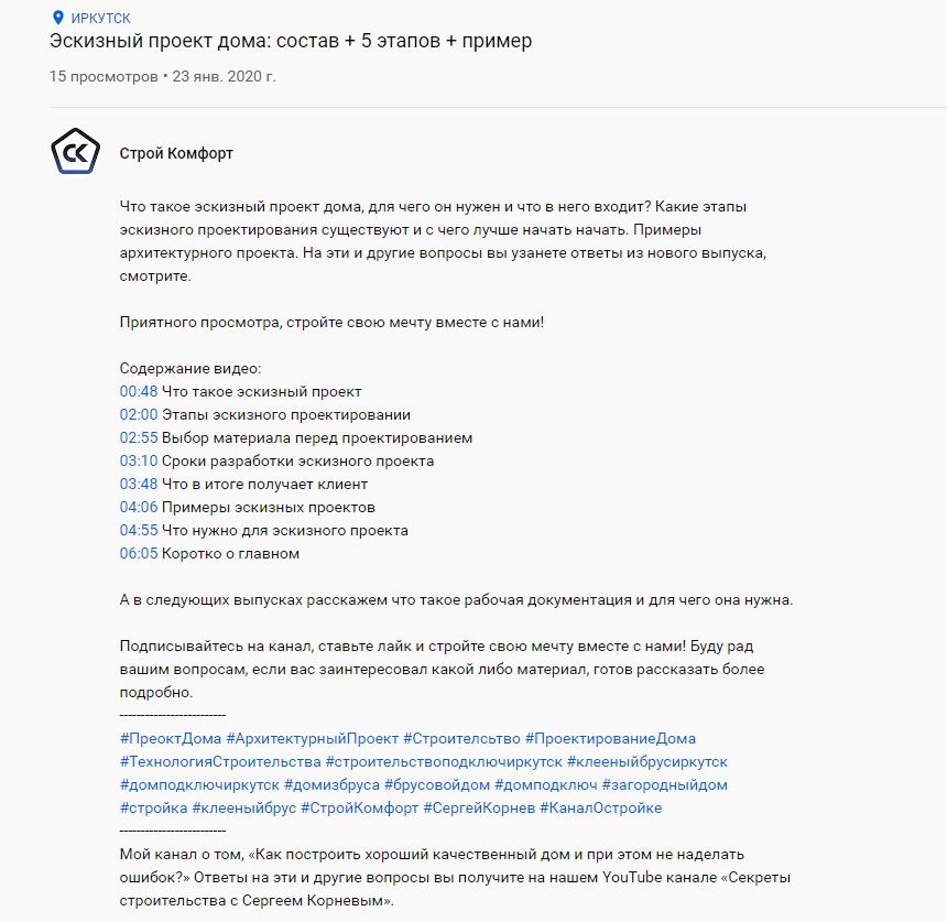 Буду сопровождать статью примерами, по кейсу продвижение ролика на тему: Эскизный проект