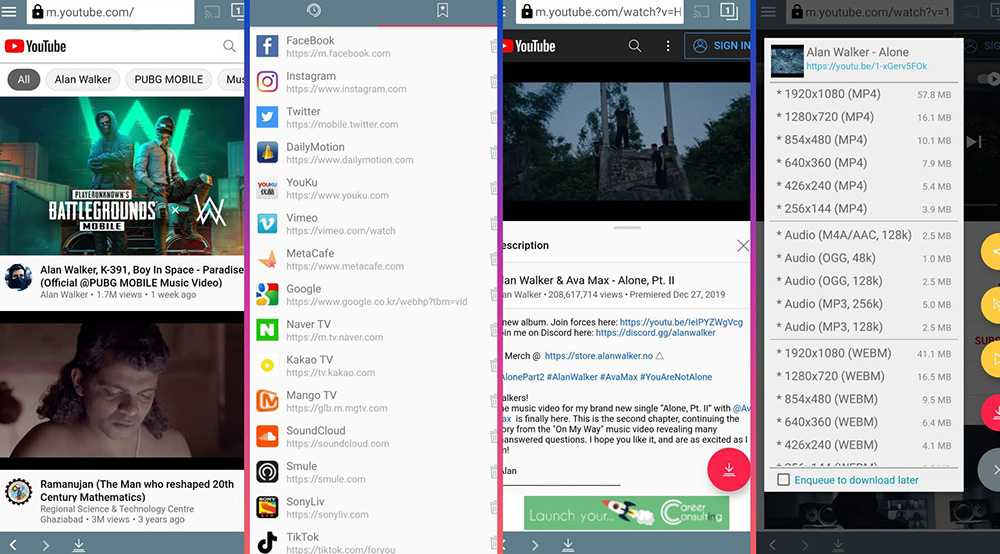 Иногда лучшие бесплатные загрузчики те, которые даже не предназначены специально для этой цели. TubeMate позволяет загружать видео с YouTube в различных форматах, включая аудио.