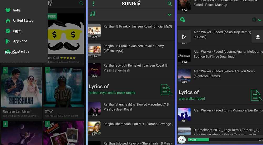 Бесплатная версия SONGily в Play Store поддерживается рекламой и имеет доступ к огромному арсеналу музыки, старой и новой, от известных и неизвестных исполнителей. С каждой найденной песней вы увидите варианты воспроизведения и загрузки, а недавно была добавлена функция, которая также позволяет скачивать видео.