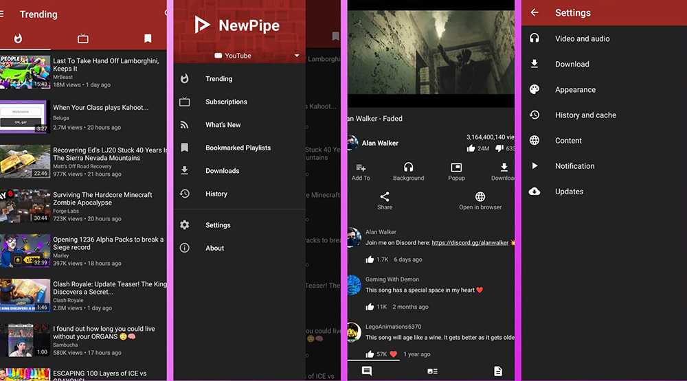 Чтобы переключиться на другую платформу, коснитесь значка меню в верхнем левом углу, затем большого красного значка «NewPipe» вверху и выберите конкретный сервис.