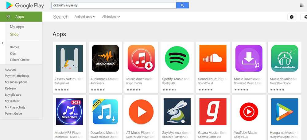 В магазине Google Play есть еще много приложений, которые поставляются бесплатно. Чтобы найти их, выполните поиск по ключевым словам, например, «бесплатная музыка» или «скачать музыку». Среди них Zaycev.Net, SoundCloud, Deezer, Musixmatch, Anghami.
