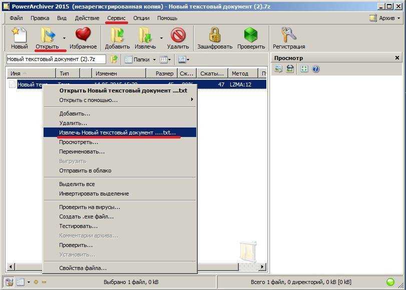 - Распакуйте «Zip» архив с программой (это можно сделать с помощью средства системы).