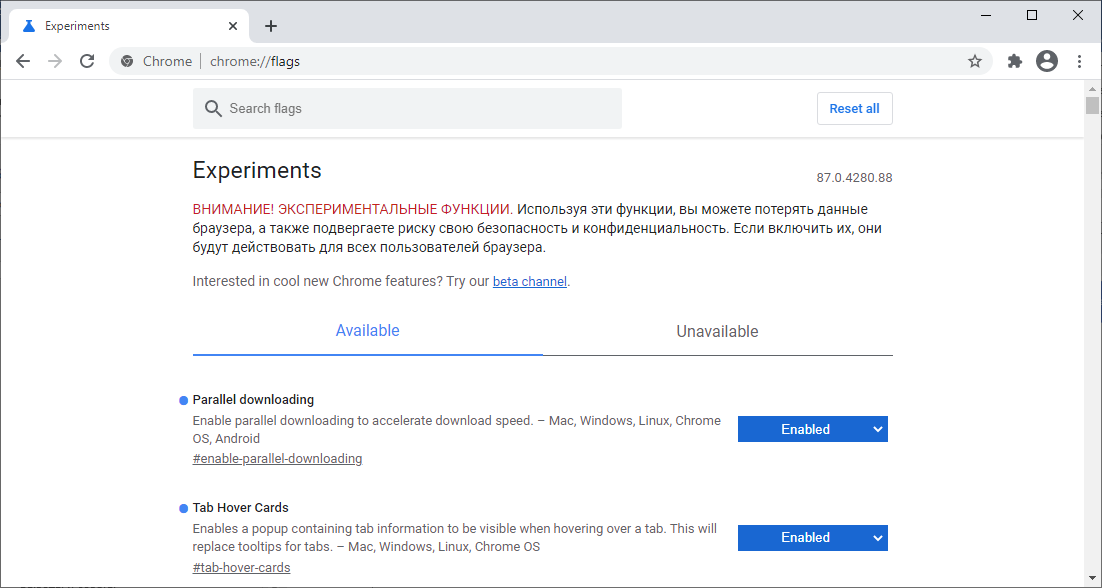 - chrome://gpu – список технологий, поддерживаемых видеокартой (особенно полезно для работающих с компьютерной графикой);