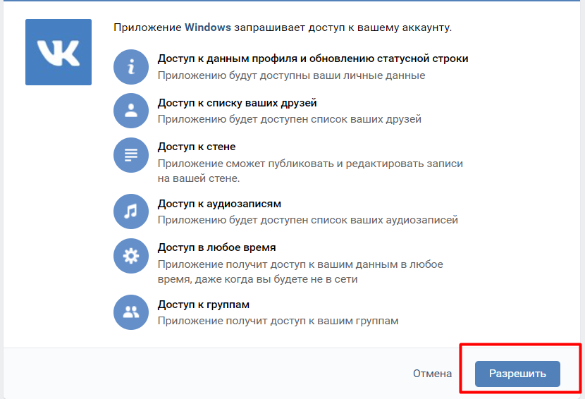 - Дождитесь авторизации и запустите приложение ВК или софт для прослушивания музыки (к примеру, Бум).