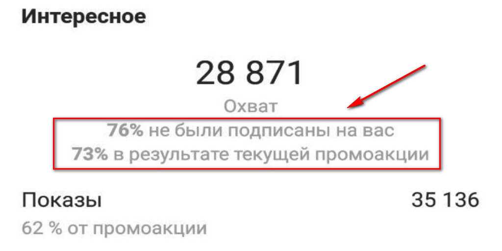 Интересное — все просмотревшие вас аккаунты и какой процент не был на вас подписан. Чем больше, тем больше вероятности, что пост стал «вирусным» (его пересылают друзьям, он появился в рекомендованном). Также большой процент бывает, если вы продвигали пост.