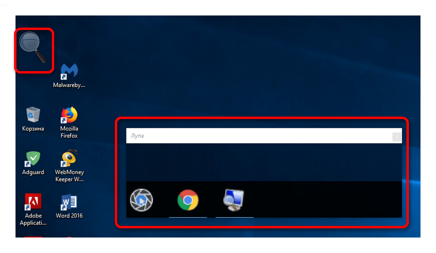 Она имитирует эффект линзы при наведении на определенную область экрана. Вызвать ее можно с помощью сочетания клавиш Win + .