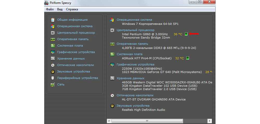 Имеет удобный интерфейс и (наравне со Speed Fan) позволяет отследить нагревание CPU в режиме реального времени. Среди дополнительных полезных функций стоит выделить возможность просматривать данные об операционной системе, графических устройствах, оптических накопителях и другом установленном оборудовании.