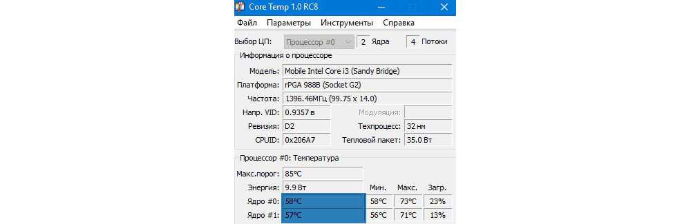 Утилита предоставляет данные о базовых характеристиках ноутбука или компьютера, а также позволяет считать сведения с температурных датчиков видеочипа и процессора в подразделе «CPU» раздела «Sensor».