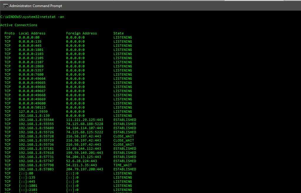 Также вы можете заметить, что команда netstat отображает текущее состояние всех соединений на устройстве. Вот некоторые примеры штатов: