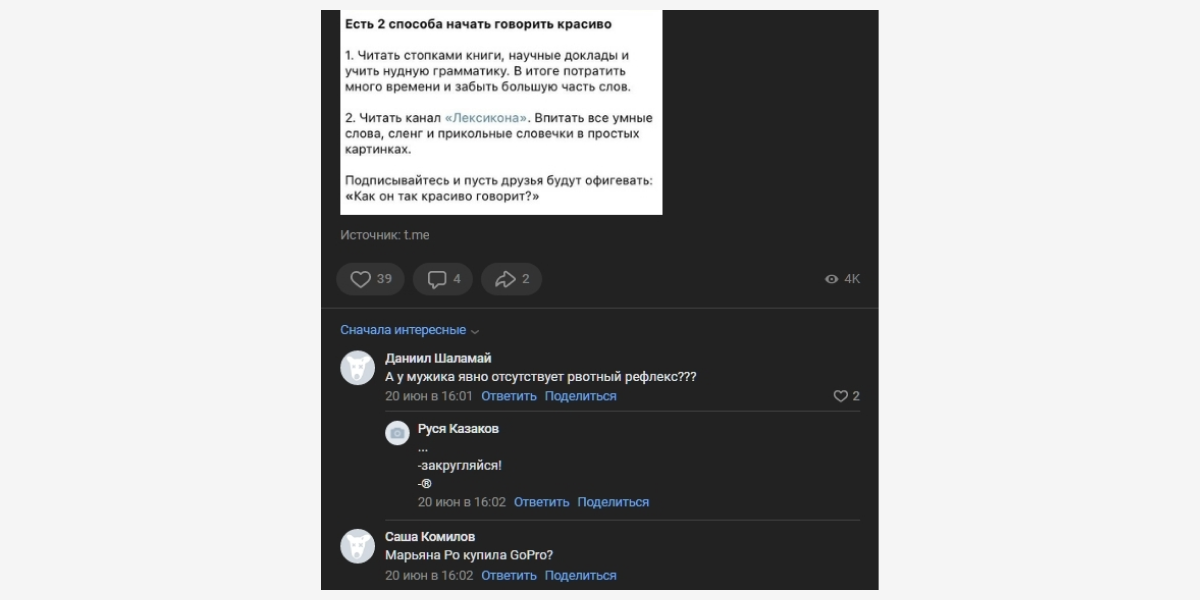 Пример типичных комментариев со стороны «неживых» подписчиков