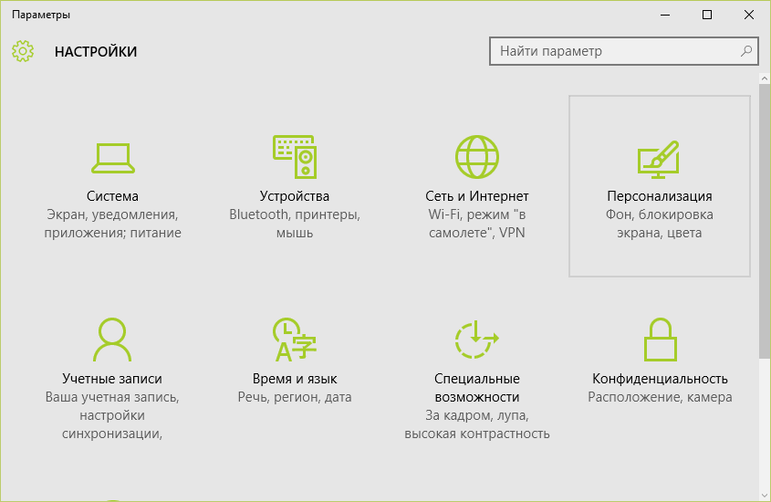 Завершающие настройки выполняются через раздел «Персонализация» в блоке «Параметры» персонального устройства.