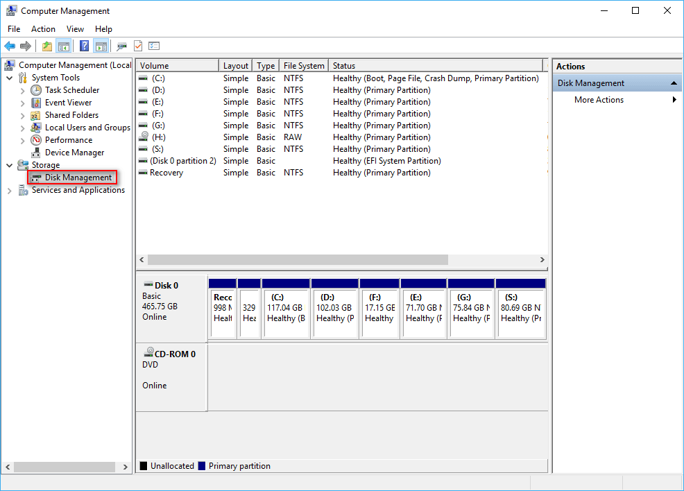 Если вы обнаружите, что ваш CD-привод не определяется в проводнике Windows, не паникуйте. Вы должны сначала открыть Управление дисками, чтобы проверить.
