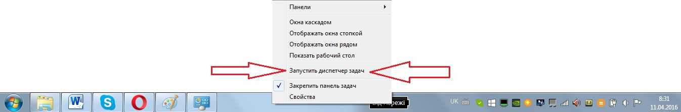 №11. Запуск диспетчера задач через нижнюю панель системы