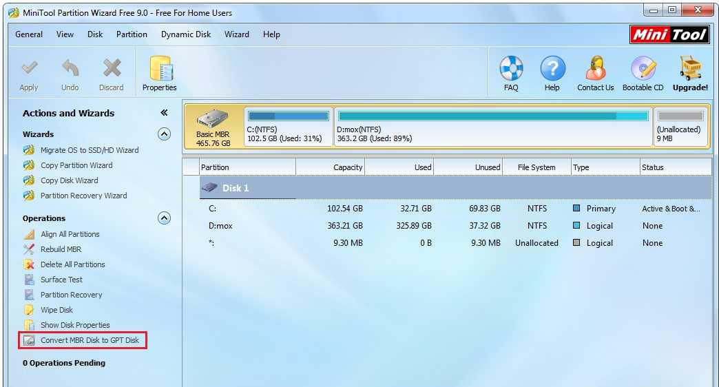 В видео ниже наглядно показано, как преобразовывать GPT диск в MBR при помощи программы Minitool Partition Wizard.