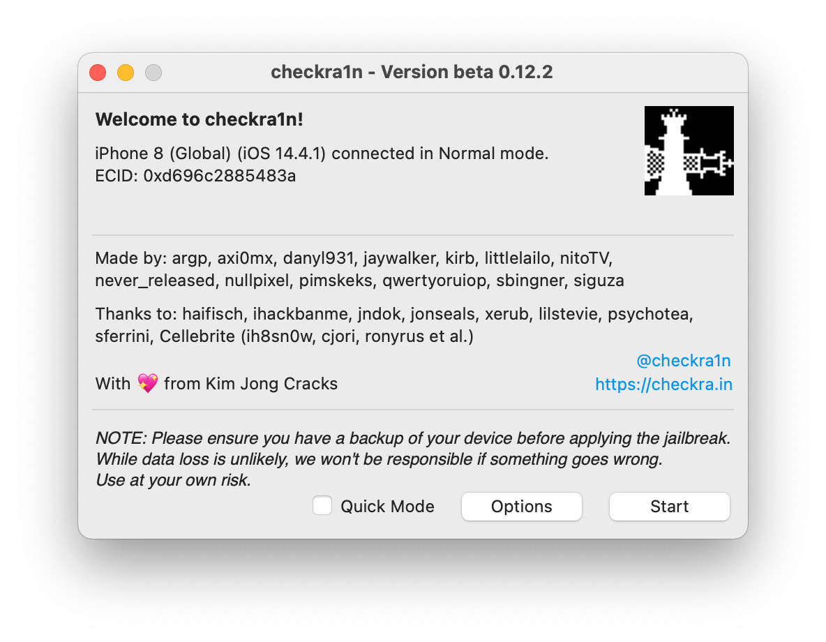 Приложение использует джейлбрейк от checkra1n и поддерживает телефоны от iPhone 5s до iPhone X, причем даже с актуальной версией ПО вроде iOS 14.6. В самом джейлбрейке ничего сложного нет, достаточно просто действовать инструкциям на экране и нажимать кнопки, которые попросят. Наш автор с радостью предложил использовать свой iPhone 8 для эксперимента, поскольку он все равно не может пользоваться телефоном из-за блокировки активации. А так хотя бы есть надежда, что устройство снова оживёт.