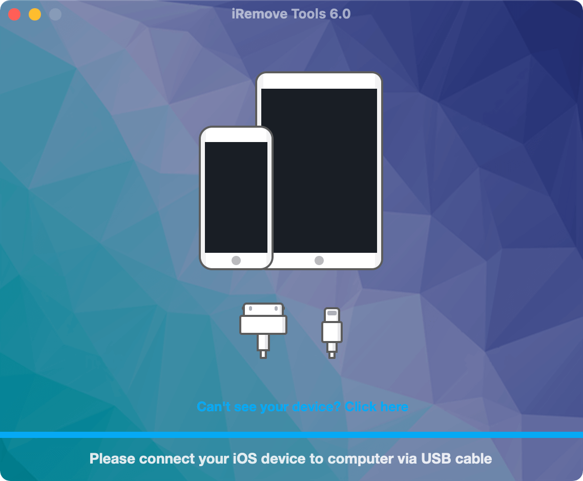 Шаг 1. Убедитесь, что на Вашем устройстве iOS присутствует учетная запись iCloud , которую необходимо удалить. Шаг 2. Скачайте программу iRemove Tools Шаг 3. Запустите программу и подключите iPhone или iPad к компьютеру с помощью USB кабеля Lightning.