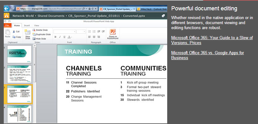 - Совместное использование в режиме реального времени в Word, Excel и PowerPoint.