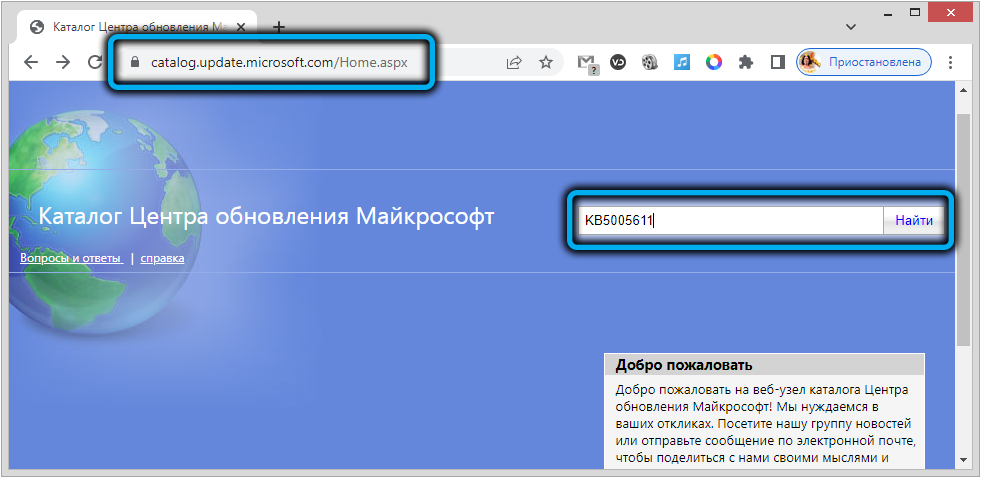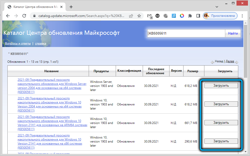Установка обновления KB5005611