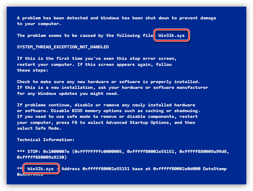 - Win32k.sys – причиной ошибки может быть программа дистанционного управления компьютером от сторонних производителей. Если подобная программа у вас установлена, то необходимо её удалить, либо отключить её службу, загрузившись с консоли восстановления.