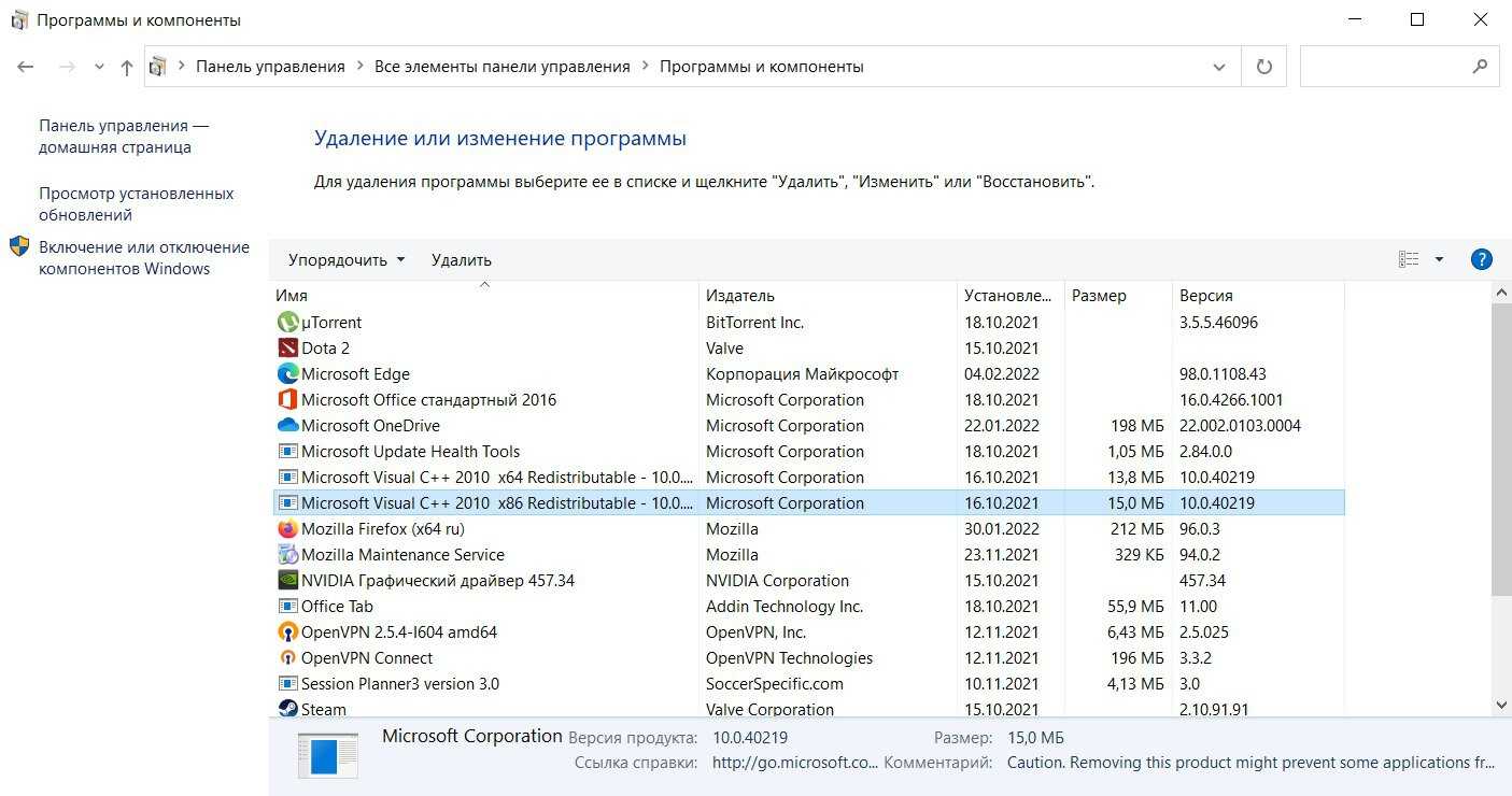 Важное примечание! Перед установкой компонентов Visual, вы должны удалить старые, если они имеются. Перейдите в удаление программ и проверьте