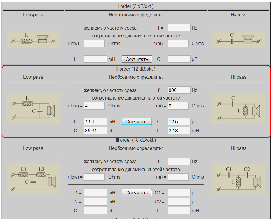 Схема кроссовера может всё же заставить отказаться от самостоятельного сбора детали. Но даже схема не заставит отказаться от перспективы самостоятельной установки купленного кроссовера. Это модернизация из категории элементарных. Почему бы и нет? Расчёт кроссовера для акустики – главная проблема. Проще всего воспользоваться калькулятором в режиме онлайн. Расчёт будет довольно-таки верным, хотя есть вероятность погрешностей и результат может не удовлетворить. Автомобильная акустическая система будет издавать всё тот же шум, а не музыку. В чём подвох?