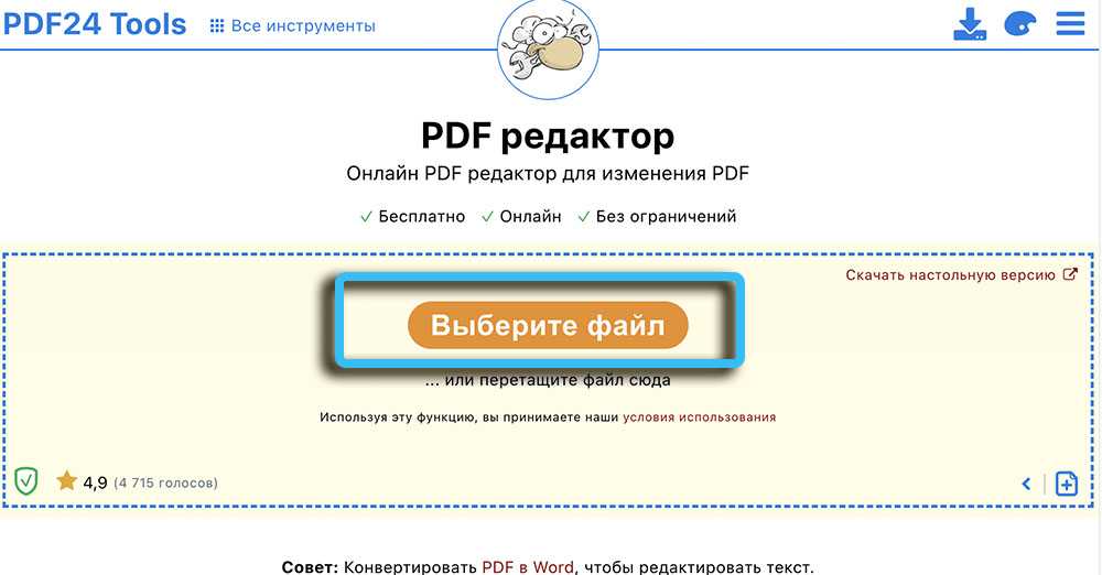 Чтобы начать работу, достаточно просто открыть этот сайт и в меню выбрать функцию «Редактировать». Файлы для изменения могут загружаться напрямую с компьютера или из облачных хранилищ по типу Dropbox или Google Drive.
