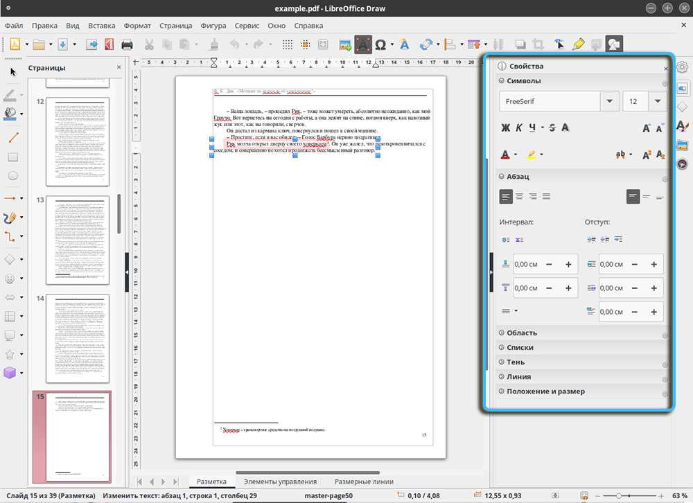 Однако, при использовании текстовых редакторов стоит учитывать некоторые ограничения и недостатки этих программ при работе с PDF. Программа LibreOffice не всегда корректно распознаёт слои документа, что может привести к нарушению структуры макета и перекрытию содержимого другими блоками.