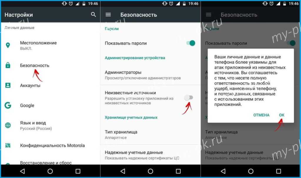 Нам необходимо нажать на кнопку «ОК»! Готово! Обращаем ваше внимание, что в некоторых случаях пункт «Безопасность» может называть по-другому: «Конфиденциальность» (зависит от прошивки Android)
